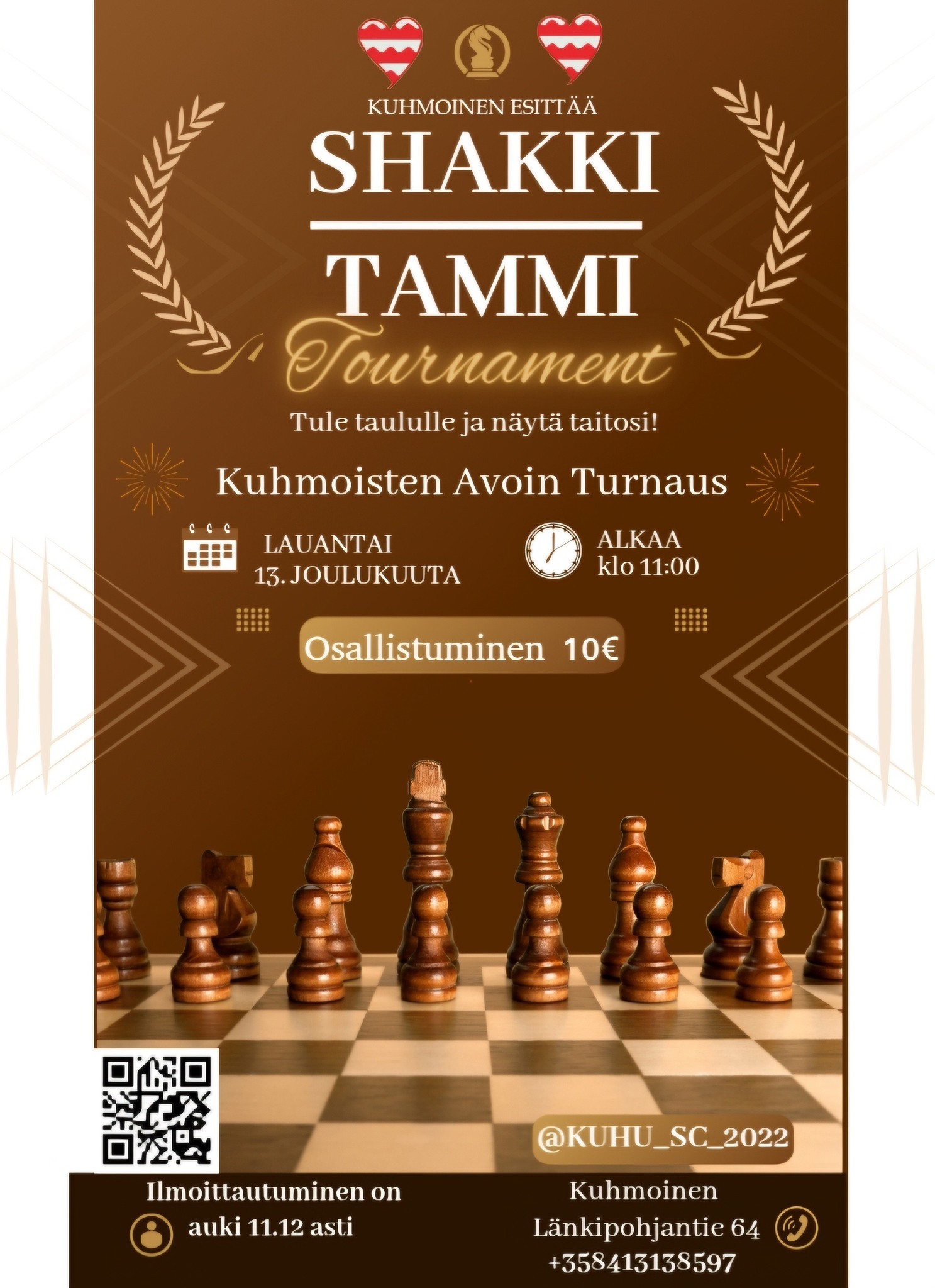Avoin shakkiturnaus Yhtenäiskoululla, Länkipohjantie 64, 13.12. klo 11